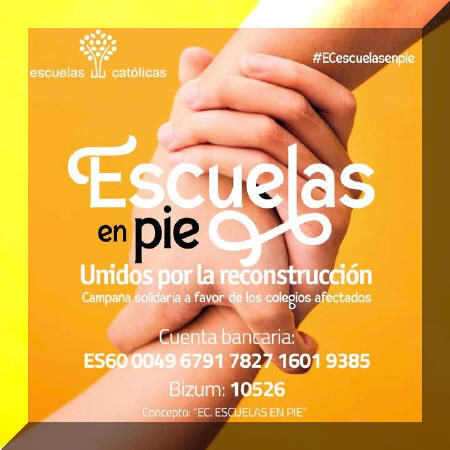 “Más fuertes que las olas que arrastran cañas y maleza, que arrastran coches y enseres, son las olas de solidaridad. Ahora es momento de coordinar apadrinamientos entre colegios, y de que las manos se entrelacen y nos ayudemos. De ahí, la campaña que desde Escuelas Católicas se ha puesto en marcha, con el lema “Escuelas en pie”, para la reconstrucción de los colegios afectados", señaló Vicenta Rodríguez.