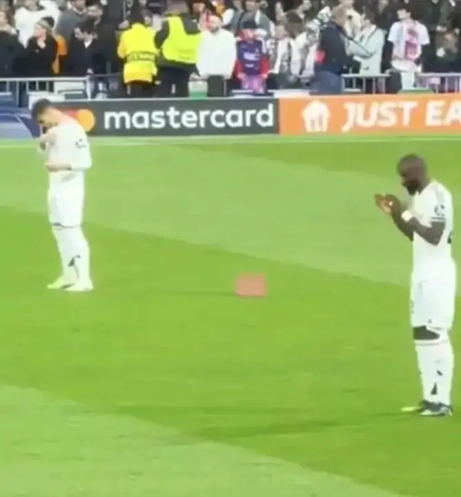 Antes del saque inicial del partido de la Liga de Campeones del martes contra el Atlético de Madrid, la pareja de defensas del Real Madrid, Antonio Rüdiger y Raúl Asencio, fueron vistos rezando juntos en el campo.