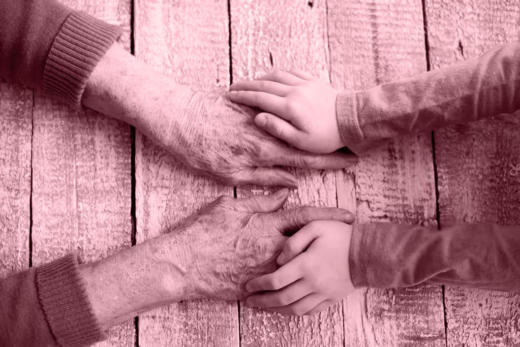 Manos de abuela y nieta.