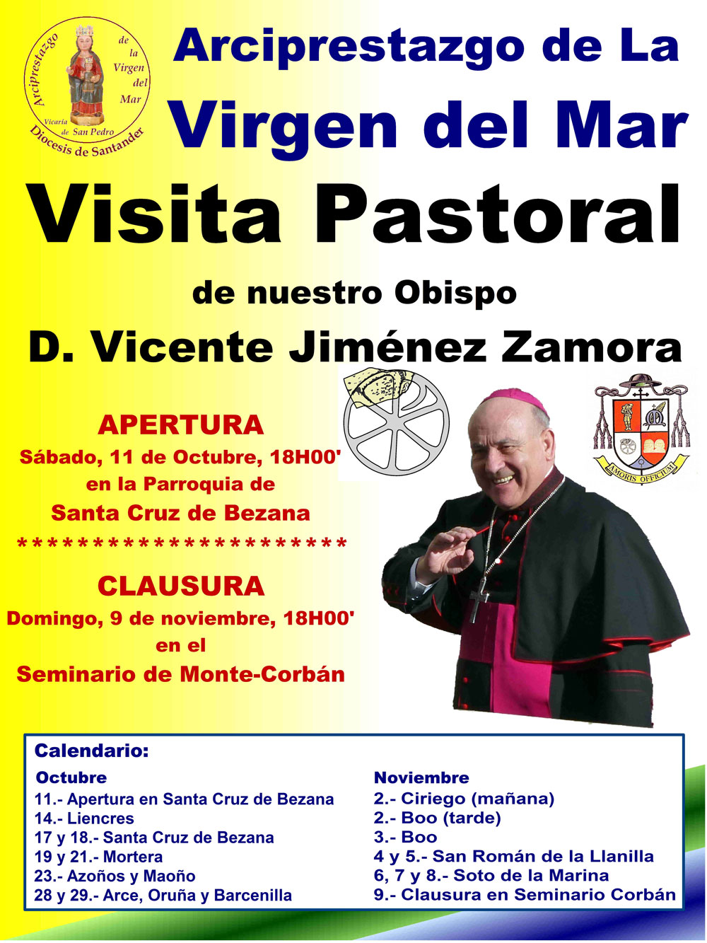 El obispo de Santander, Mons. Vicente Jiménez, inicia este sábado 11 de octubre una visita pastoral con la que recorrerá, hasta noviembre, todos los pueblos del entorno de Santa Cruz de Bezana y que forman parte del arciprestazgo de la Virgen del Mar.