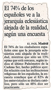 Y es que, como se dice tantas veces, la jerarquía eclesiástica, por ser carca, está muy alejada de la realidad aunque ¿no será que la realidad está muy alejada de la Iglesia católica?