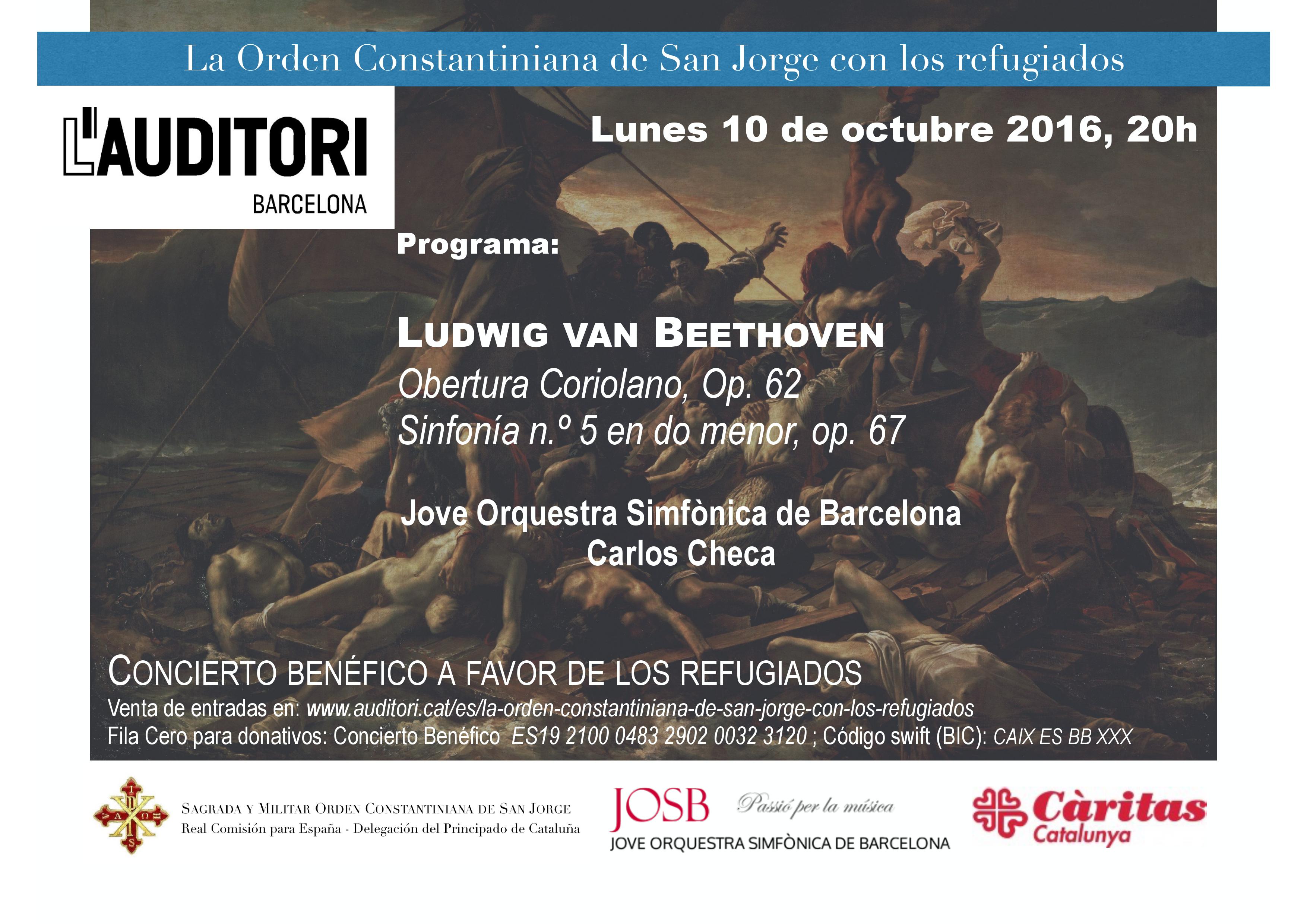 La Joven Orquesta Sinfónica de Barcelona y su director se han implicado activamente en esta iniciativa solidaria. Sagrada y Militar Orden Constantiniana de San Jorge / secretariageneralrc@ordenconstantiniana.es Las entradas al concierto, a un precio único de 20 Euros, pueden adquirirse a través de la página web de l’Auditori: www.auditori.cat/es/la-orden-constantiniana-de-san-jorge-con-los-refugiados