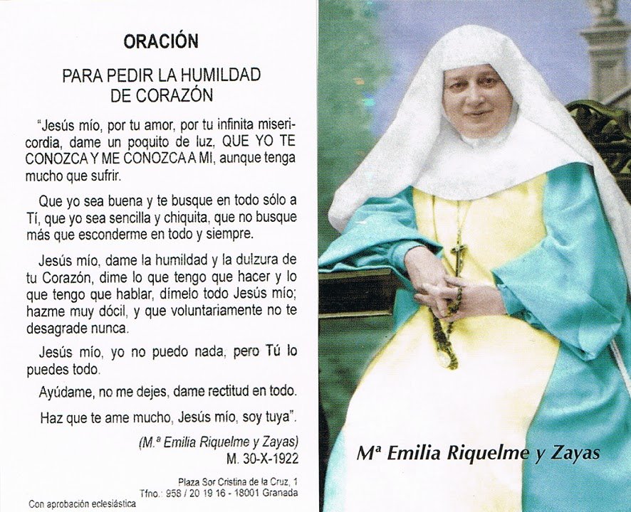 El próximo 9 de noviembre la Catedral de Granada acogerá la beatificación de la granadina María Emilia Riquelme y Zayas, fundadora de la Congregación de las Misioneras del Santísimo Sacramento y María Inmaculada, que tiene en Granada su Casa Madre y está presente en México, Colombia, Bolivia, Brasil, Estados Unidos, Angola, Filipinas y Portugal, así como diversas casas de religiosas en España.