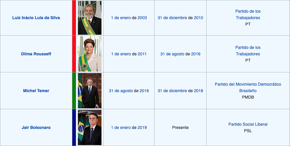 Últimos cuatro presidentes de Brasil