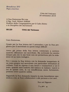 Ante estas acusaciones, a las 12 de la noche del 13 de enero, el cardenal Sarah tuvo que defenderse en su perfil de Twitter aportando pruebas para demostrar que Benedicto XVI conocía el libro y le dio permiso para escribir sobre el celibato.