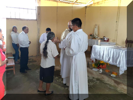 Y concluye la entrevista con el resumen de cualquier y con una foto en la que están saliendo de pastoral con un grupo de seminaristas de la región: "Sábado. Después de 3 horas hasta llegar a la comunidad y 3 atascos en el barrizal de los caminos. Confesiones, Misa, bautizos y terminamos con una comida fraterna, en casa de un vecino".